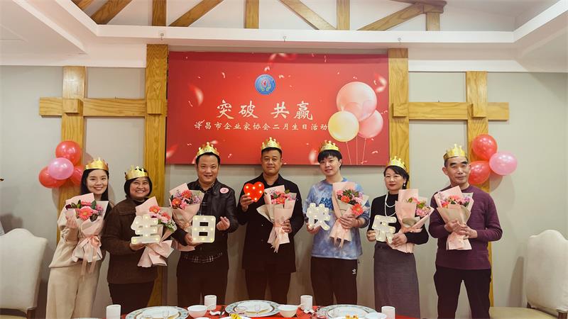 黃玉霞首先對2月份值班會長團(tuán)隊(duì)表示感謝,她表示在剛剛復(fù)工復(fù)產(chǎn)的情況下,2月份輪值會長張建濤給壽星們逐一打電話發(fā)出邀請,團(tuán)隊(duì)成員精心策劃“突破 共贏 ”為主題的生日宴,讓各位壽星通過協(xié)會這個(gè)平臺,坐在一起,確屬不易。二是代表協(xié)會全體同仁祝8位壽星生日快樂,闔家幸福。三是對支持本次生日宴的相關(guān)企業(yè)表示感謝。