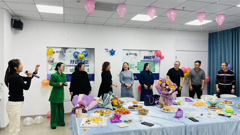 秘書(shū)長(zhǎng)黃玉霞應(yīng)邀參加了本次生日宴,并向壽星送上美好的祝福。隨后,黃秘書(shū)長(zhǎng)和壽星們一起參觀了鉆葉口腔的企業(yè)文化。
