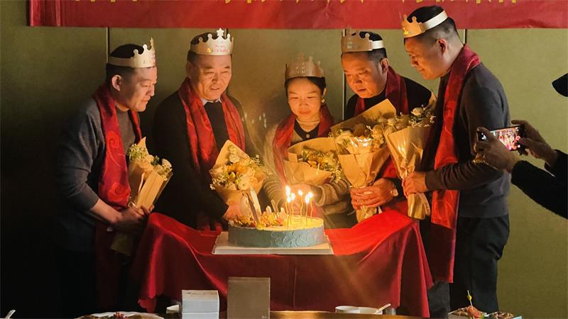 (全體人員的共同祝福將生日會(huì)的歡樂(lè)氛圍升到高潮)