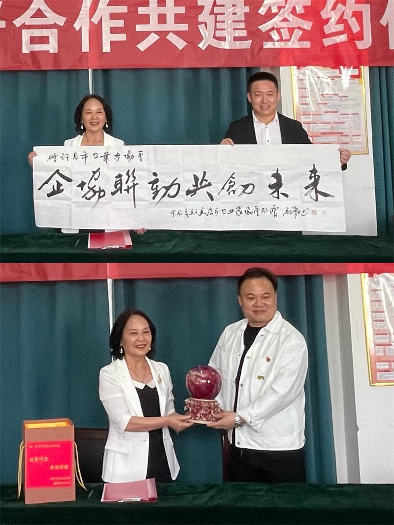 會上,駐馬店市工商聯(lián)副主席、市企業(yè)家協(xié)會黨委書記黨進代表駐馬店市企協(xié)向許昌市企協(xié)贈送名家書法作品《企協(xié)聯(lián)動 共創(chuàng)未來》;黃玉霞秘書長代表許昌市企協(xié)向駐馬店市企協(xié)回贈由河南省工藝美術大師鈞瓷《財源滾滾》。一卷墨寶、一件珍品,藝術與古典交相輝映,傾注了兩地協(xié)會的溫暖情誼,同時也傳遞了雙方的美好祝福。